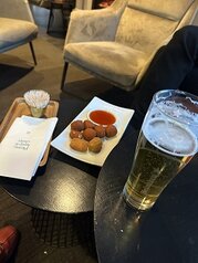 In der zum Restaurant gehörenden Bar im Vorraum kann man vor einem künstlichen Kamin entspannen und auch kleine Häppchen wie unsere Borrelhapjes genießen. Die Sessel und die ganze Atmosphäre dort sind wirklich gemütlich.
