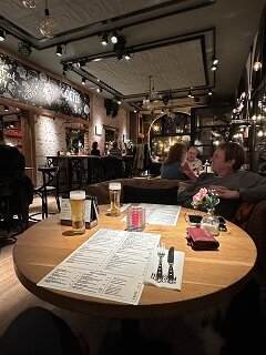 Am 2. Abend entscheiden wir uns dazu, in der nahegelegenen Altstadt zu essen und wählen das wenige Gehminuten entfernte Restaurant Hudson, was uns schon von außen sofort angesprochen hat, da es im Stil eines „Braunen Cafés“ gestaltet ist. Wir werden nicht enttäuscht. Super stylische Atmosphäre, freundlicher Service und richtig gutes Essen mit großen Portionen. Dazu wirklich bezahlbar. Auch unser Hund ist mehr als willkommen. Wir haben uns selten in einem Restaurant so wohl und willkommen gefühlt wie dort. Vorab-Reservieren ist aber wichtig, denn es scheint, dass dieses Lokal ein beliebter Treff auch bei Niederländern ist. Total authentisch, gezellig wie es in Niederländisch heißt und ausgesprochen gut!